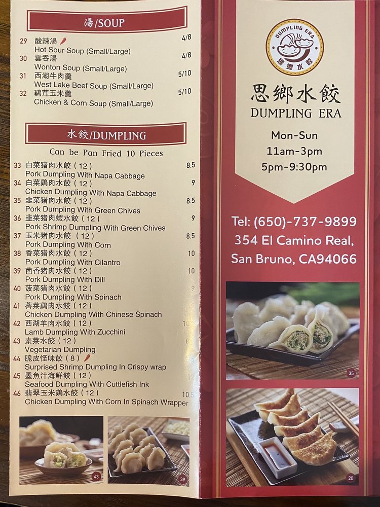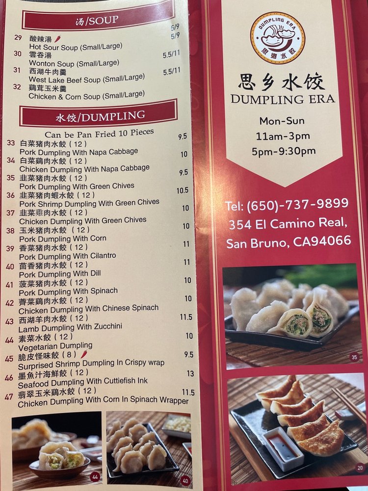 "Dumpling Era" in San Bruno, CA is a gem for Chinese cuisine enthusiasts. Offering a variety of appetizers, soups, and handmade noodles, this restaurant has diverse options to satisfy any craving. Customers rave about the delicious dumplings, knifecut noodles, and flavorful dishes like the Sweet and Sour Pork Baby Back Ribs and the Couples Delight. The welcoming ambiance and friendly service make dining here a delightful experience. Despite the limited parking, the quality of the food and the affordability keep customers coming back for more. Whether you're a fan of dumplings or looking to try traditional Chinese dishes, "Dumpling Era" is a must-visit restaurant that guarantees a satisfying culinary journey.